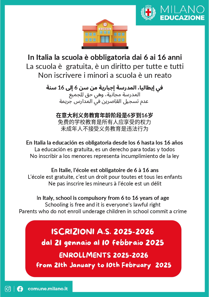 Attenzione! Con una nota del 3 gennaio 2025, il Ministero dell'Istruzione e del Merito ha posticipato le date per le iscrizioni per l'anno scolastico 2025-26.